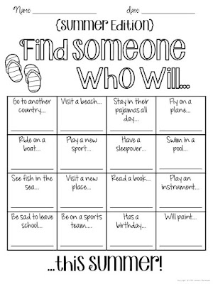 Check out this fun end of the year activity that you can play with your students! Have your students walk around the class and find someone who will be up to something fun this summer! There are 16 options, so your students will have some time to find a match for each option.